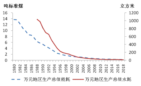 图4 1980-2018年万元地区生产总值能耗和水耗情况