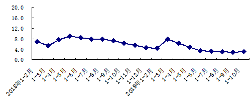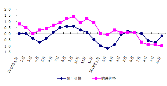 1-10月,全市工业生产者出厂价格同比下降0.4%,购进价格同比下降0.3%。10月份,出厂价格同比下降0.2%,环比上涨0.2%;购进价格同比下降1.0%,环比上涨0.1%。